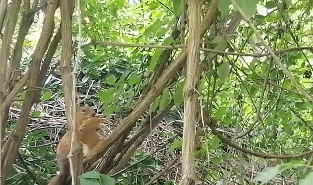 Amasya'da bir bağevinde kahvaltı yapan ailenin masasına sevimli bir sincap davetsiz misafir oldu. Kamerayla görüntülediği sincaba ekmeği kaptıran vatandaş, "Sincap kardeş ekmeğimi niye çaldın" diye seslendi.