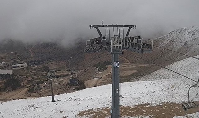 Davraz Kayak Merkezine mevsimin ilk karı düştü bazı noktalarda beyaza bürüdü