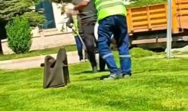 Elazığ'da görevleri başında olan temizlik görevlileri, davulun sesini duymalarıyla oynamaya başladı. O anlar bir vatandaşın cep telefonu kamerasına yansıdı.