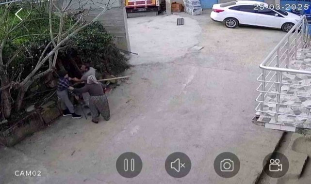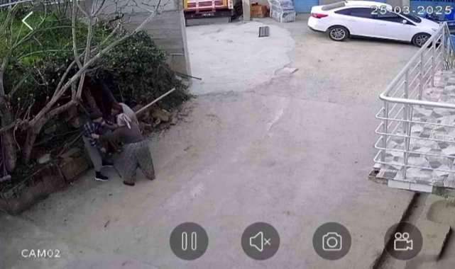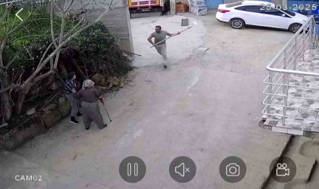 Dayısına kürekle saldırdı, o anlar güvenlik kamerasında