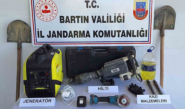 İl Jandarma Komutanlığı ekipleri, yaptı baskında 3 şüpheli şahsın izinsiz kazı yaptıkları tespit etti. Şahıslar suç üstü yalanırken, kazıda kullanılan 1 adet jeneratör, 1 adet beton delici, 2 adet kürek, 1 adet spiral, 2 adet murç, 3 metre kablo, 4 litre benzin, 1 çift eldiven ele geçirildi.