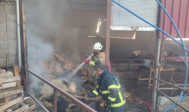 Hatay'da samanlıkta çıkan yangın, ahırsa sıçramadan itfaiye ekipleri tarafından söndürüldü.