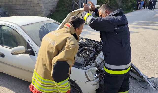 Hatay'da minibüs ve otomobilin çarpışmasıyla yaşanan kazada yan yatan minibüste bulunan 2 kişi yaralandı.