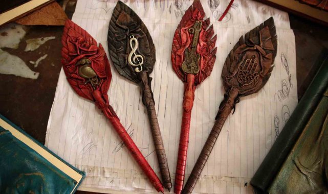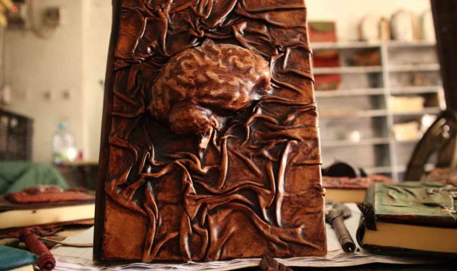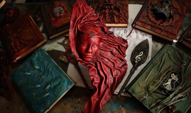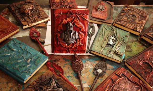 Defterleri deri kullanarak sanata dönüştürüyor