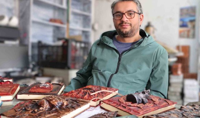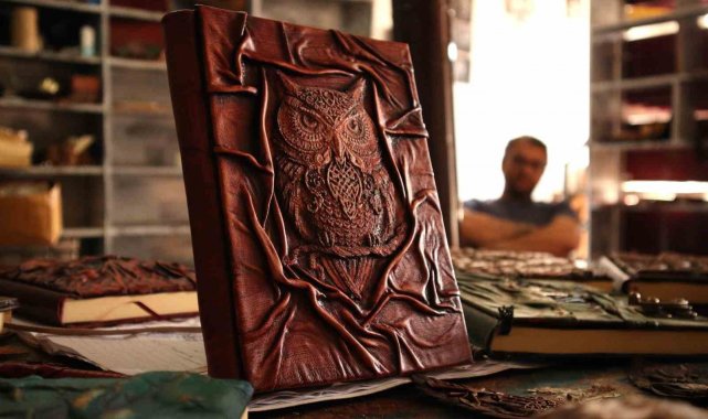 Çorum'da deri ciltleme sanatıyla uğraşan 35 yaşındaki usta, günlerce uğraştığı defterleri kapladığı deriyle adeta sanata dönüştürüyor. Büyük uğraşla kaplanan defterler yurtdışındaki müşterilerinden büyük ilgili görüyor.