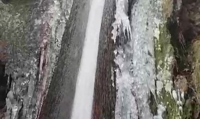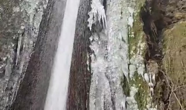 Değirmende Şelalesi soğuk havanın etkisiyle kısmen dondu
