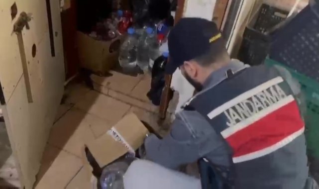 Dekoratif rafın arkasındaki gizli depoda 558 litre sahte içki ele geçirildi