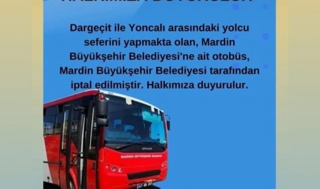 Dargeçit Belediyesi, sosyal medya hesaplarından yaptığı paylaşımda "Dargeçit ile Yoncalı arasındaki yolcu seferini yapmakta olan Mardin Büyükşehir Belediyesine ait otobüs, Mardin Büyükşehir Belediyesi tarafından iptal edilmiştir. Halkımıza duyurulur." ifadelerine yer vererek, kamuoyunda tepki oluşturmaya çalıştı. Ancak Büyükşehir Belediyesi yetkililerinden edinilen bilgilere göre, söz konusu hattın hiçbir zaman iptal edilmediği ortaya çıktı.