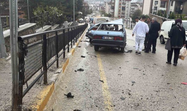 Tokat'ta sürücüsünün kontrolünü kaybettiği otomobil, kaldırımda bulunan demir korkuluğa çarptı. Tofaş'ın çarptığı demir zarar görmezken otomobil ikiye ayrıldı.