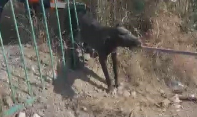 Demir korkuluğa sıkışıp mahsur kalan köpeği itfaiye kurtardı