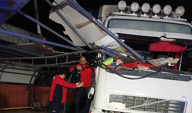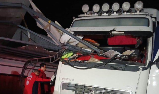 Demir korkuluk tırın şoför kabinine saplandı, sürücü yaralandı