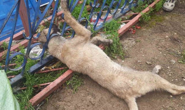 Demir korkuluklara sıkışan köpeği itfaiye ekipleri kurtardı