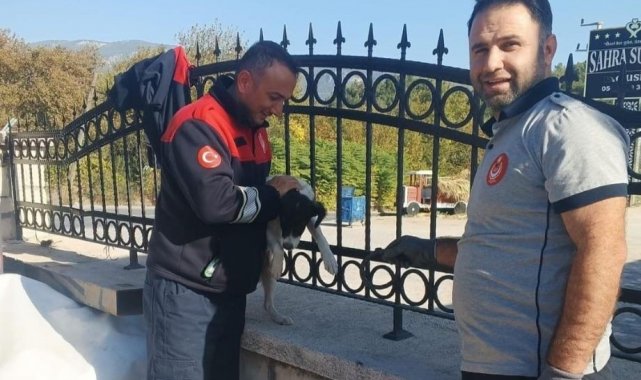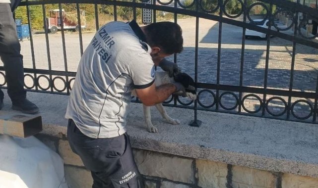 İzmir Büyükşehir Belediyesi İtfaiye Dairesi Başkanlığı ekipleri, Buca ilçesi Kaynaklar Mahallesi'nde bir iş yerinin demir parmaklıklarına kafası sıkışan köpek ihbarını alır almaz harekete geçti. Sahipsiz olduğu öğrenilen ve bir süre demir parmaklıklar arasında kurtarılmayı bekleyen köpek, itfaiye ekiplerine haber verilmesi ile bulunduğu yerden başarılı bir operasyonla kurtarıldı. Korku yaşayan köpek, itfaiye ekipleri tarafından kurtarılmasının ardından su ve mama verilerek yatıştırıldı.