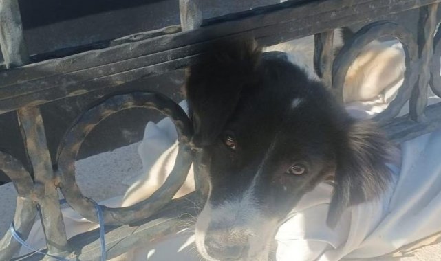 Demir parmaklıklara kafası sıkışan köpeği itfaiye kurtardı