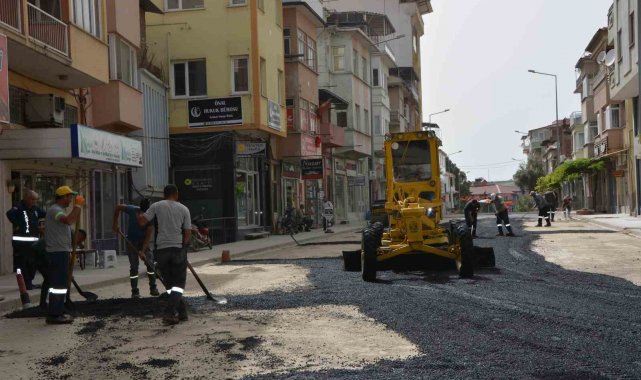 16 yıldır atıl vaziyette bulunan belediye bünyesindeki asfalt plentini yeniden faaliyete alan Belediye Başkanı Erkan Kara, altyapı dolayısıyla ulaşımda sıkıntı yaşanan ana caddelere plent makinesinde üretilen sıcak asfaltı yollara uyguluyor.