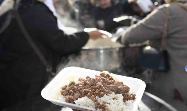 Hazırlanan 8 kazan kavurma ve pilav, ilçe pazaryerinde kurulan stantlarda yaklaşık 8 bin vatandaşa dağıtıldı.