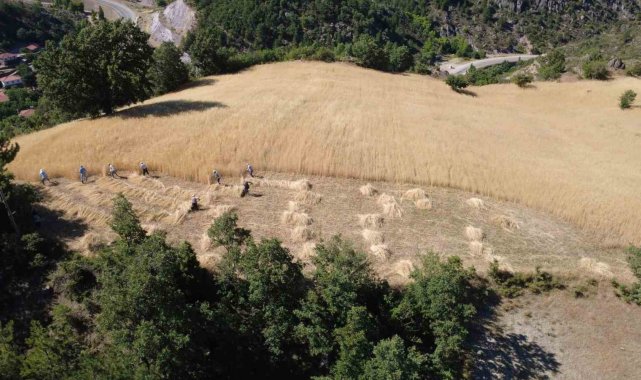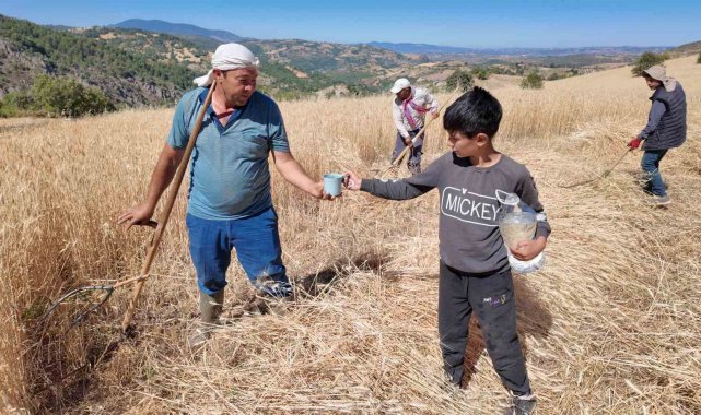 Tarlada el birliği ile kurulan yer sofrasında sohbetler eşliğinde ise kahvaltı yapılıyor. Çiftçi Hüseyin Ersöz, "Yaz geldiğinde çiftçilerimizle çalışıyoruz. İmece bizim atalarımızdan dedelerimizden kalan bir gelenek. Komşularımız birbirleri arasında haberleşir akşamları sohbet ederken planlanır sırayla herkesin işine yardıma gidilir. Haziran başlar harman işlerimiz Temmuz ayı sonuna kadar devam ederiz. Sıcakta zor oluyor ama geleneklerimiz yaşatmak güzel. Çocuklarımız su getirir, kadınlar yemek yapar el birliği içerisinde harmanlarımızı kaldırırız. Dedelerimizden babalarımızdan gördüğümüzü geleceğe taşımaya gayret ediyoruz" dedi.