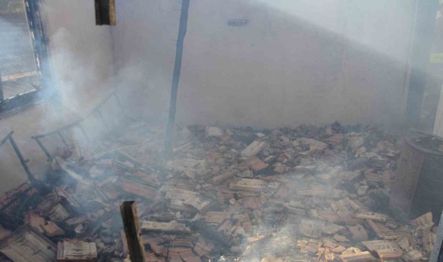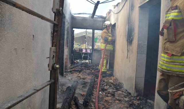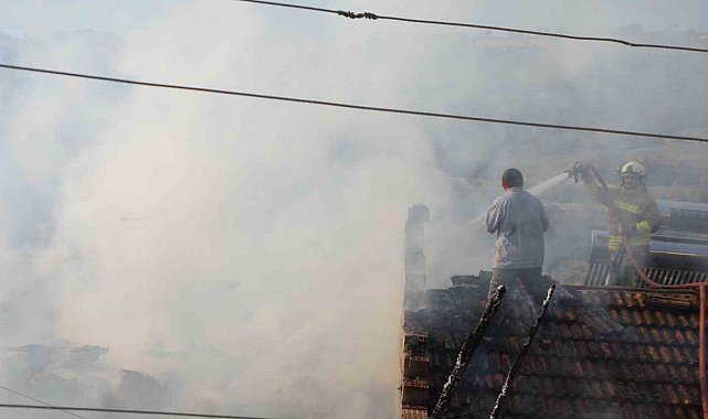 Manisa'nın Demirci ilçesinde meydana gelen yangında bir ev tamamen yanarak kullanılamaz hale gelirken, ahırdaki büyükbaş hayvanlar ise mahalle sakinleri tarafından kurtarıldı.