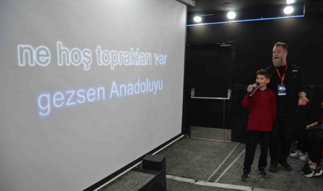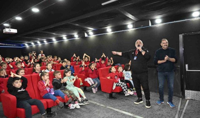 Belediye Başkanı Erkan Kara da gezen sinema tırındaki etkinliğe katılarak çocuklarla birlikte şarkı söyleyip mutluluklarına ortak oldu.