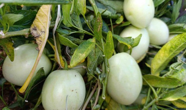 Manisa'nın Demirci ilçesine bağlı Çanakçı Mahallesi'nde yaşayan 66 yaşındaki Halise Demiröz, üç yıl önce diktiği fidelerden ilk kez ürün alarak ilçede pepino yetiştiren ilk çiftçi oldu.