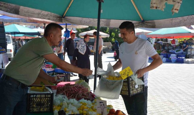 Demirci Belediye Başkanı Erkan Kara, AK Parti İlçe Başkanı Nurullah Akgün ve MHP İlçe Başkanı Ümit Kanyılmaz ile birlikte semt pazarını ziyaret ederek, esnaflara hayırlı işler ve bereketli kazançlar temennisinde bulundu.