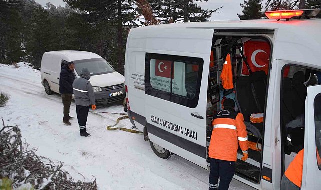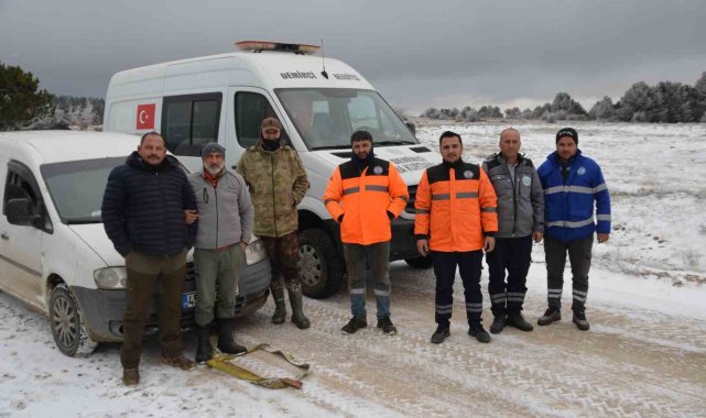 Demirci'de kar nedeniyle yolda mahsur kalan 3 avcı kurtarıldı