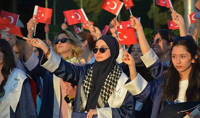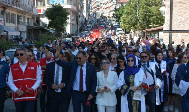 Mezuniyet yürüyüşüne bu yıl mezun olacak 580 öğrencinin yanı sıra Belediye Başkanı Erkan Kara, eşi Nermin Kara, Rektör Prof. Rana Kibar, İlçe protokolü, öğrenciler ve aileleri katıldı.
