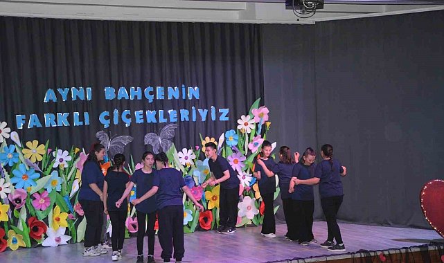 Programda okul öğretmenleri Dürdane Çataler ve Mürüvvet Hepyürekliler koordinasyonunda çiçek figürleri ile hazırlanan "Hepimiz Aynı Bahçenin Farklı Çiçekleriyiz" mesajı veren bu dekor öğrencilerin gösterisi ile duygu dolu anlara sahne oldu.