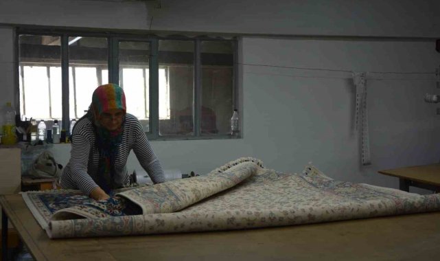 Dokunan halı daha sonra hata kontrolü, yıkama, temizlik, overlok ve paketleme yapıldıktan sonra yurt dışına gönderilmek üzere hazır hale getiriliyor.