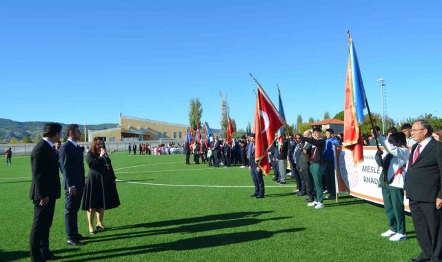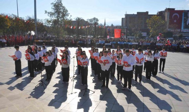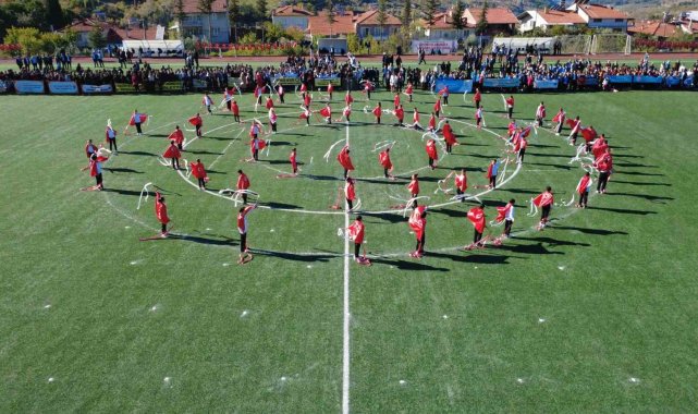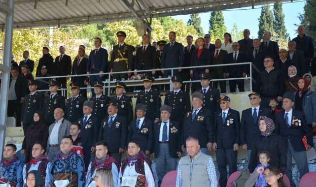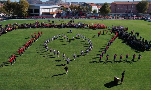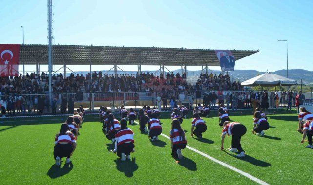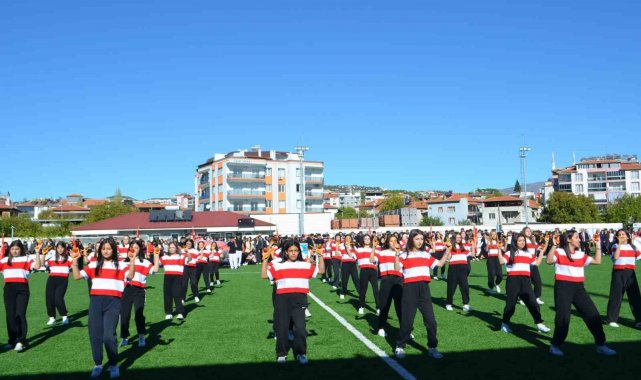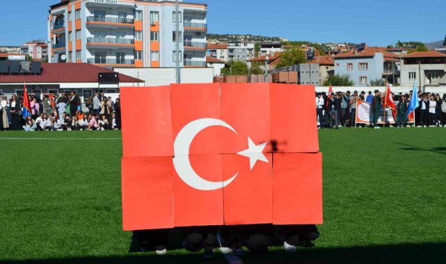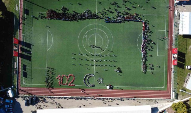 Gevher Nesibe Mesleki ve Teknik Anadolu Lisesi ve 75. Yıl Alime Paşa Ortaokulu öğrencileri bedenleri ile gösteriler kapsamında stada 102 ve Ayyıldız koreografisini çizdiler. Törende Kaymakam Fatih Bayram, Belediye Başkanı Erkan Kara ve Garnizon Komutanı Mly. Binbaşı Hüseyin Cihan Korkmaz tarafından 29 Ekim Cumhuriyet Bayramı dolayısıyla ilçede düzenlenen okullar arası yarışmalarda dereceye giren öğrencilere ödülleri verildi.