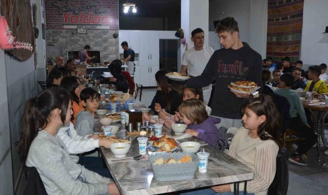 Manisa'nın Demirci ilçesinde hayırsever tarafından çocuklara özel iftar yemeği programı organize edildi.
