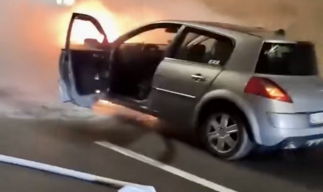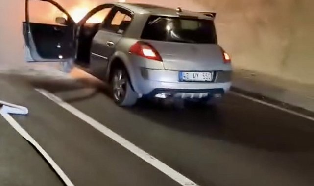 Demirkapı Tüneli'nde alev alan otomobil kullanılamaz hale geldi
