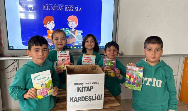Erzincan'da Demirkent TOKİ İlkokulu 2. sınıf öğrencileri, sınıf öğretmenleri rehberliğinde yürüttükleri "Kitap Kardeşliği" projesi kapsamında Çayırlı 29 Ekim İlkokulu 2. sınıf öğrencilerine kitap hediye etti.
