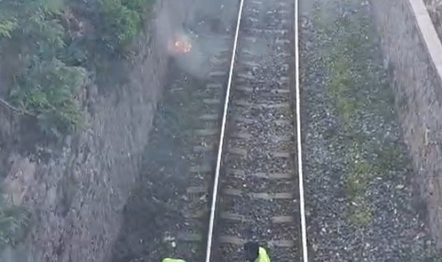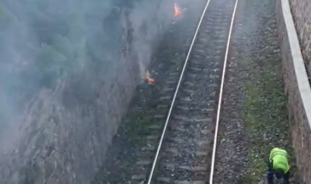 Demiryolunda yakarak temizlik çalışması vatandaşları tedirgin etti