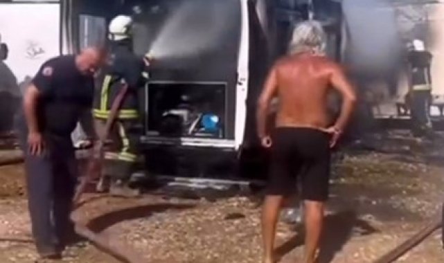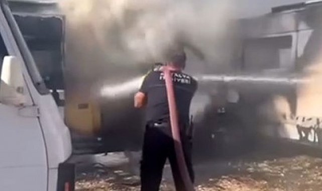 Antalya'nın Demre İlçesinde park halindeki karavanda çıkan yangın, yanındaki karavana da sıçradı. Yangın itfaiye ekiplerince söndürülürken, karavanlar kullanılamaz hale geldi.