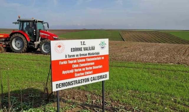 Edirne'de tarımsal üretimde verimliliği artırmak amacıyla Tarım İl Müdürlüğü ile Tekirdağ Namık Kemal Üniversitesi iş birliğiyle yürütülen "farklı toprak işleme yöntemlerinin ve ekim zamanlarının ayçiçeği verim ve verim unsurlarına etkileri" projesi çerçevesinde Merkez Sarayakpınar köyünde uygulama denemeleri devam ediyor.