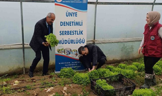 Ordu'nun Ünye ilçesinde ziraat odası başkanlığının hayata geçirdiği 'Toprağa Dokunan Eller Kazanıyor' projesi dahilinde, denetimli serbestlikteki hükümlüler, kendi yetiştirdikleri marul ve maydanozların ilk hasadını gerçekleştirdi.