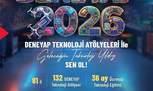 Türkiye'nin Milli Teknoloji Hamlesi vizyonu doğrultusunda; Sanayi ve Teknoloji Bakanlığı, Gençlik ve Spor Bakanlığı, TÜBİTAK ve Türkiye Teknoloji Takımı Vakfı (T3 Vakfı) paydaşlığında yürütülen DENEYAP Teknoloji Atölyeleri kapsamında 2026 Öğrenci Seçme Süreci başvuruları devam ediyor.