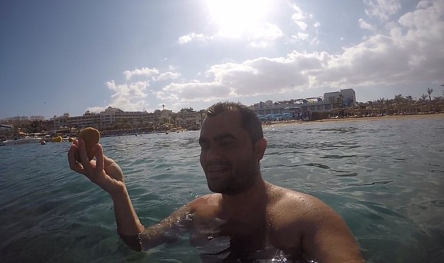 Antalya'nın Alanya ilçesinde ahşap ürünleri mağazasında çalışan ve geçen hafta eşi ile birlikte tatil için Mısır'a giden Fatih Gargı, balıklara olan sevgisini göstermek için yanında götürdüğü Alanya'nın S pastasını Kızıldeniz'deki balıklara yem olarak verdi. Çekilen görüntü kısa sürede sosyal medyada viral olurken, balıkların pastayı yemesi ise izleyenlerin yüzünü güldürdü.