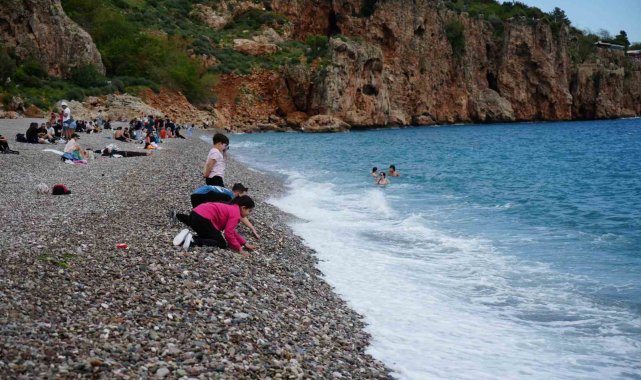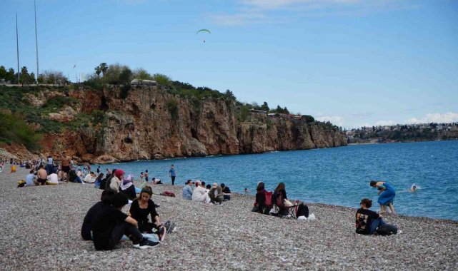Günlerdir süren yağışların ardından güneşin yüzünü göstermesiyle Antalya adeta baharı değil, yazı karşıladı. Hava sıcaklığı 18 dereceye, deniz suyu sıcaklığı ise aynı seviyeye ulaşınca tatilciler sahillere akın etti. Kentin simge noktalarından Konyaaltı Sahili, kalabalık görüntüleriyle yaz aylarını aratmadı. Kimi kumsalda yürüyüş yaparken kimi de sahil şeridindeki banklarda manzaranın keyfini çıkardı. Deniz kenarında çocuklar çakıl taşlarıyla oynarken, gençler ve aileler denizin serin sularında yüzdü. Bazı vatandaşlar, kayalıklardan denize atladı, bazısı ise denizi izleyip dinlendi.