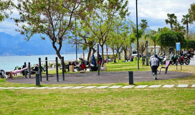 Antalya'da yalnızca deniz değil, sahil parkları ve yürüyüş alanları da doldu. Bebek arabalarıyla yürüyüş yapan ailelerden scooterla gezen gençlere, piknik yapanlardan bisiklete binenlere kadar herkes güneşin ve tatilin tadını çıkardı.