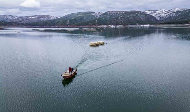 Almus Baraj Gölü'nde balık üreticileri bayramda da mesaiye devam ederken, bu yıl 200 tonluk hasat hedefleniyor.