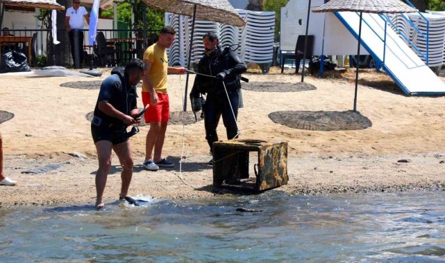 Bodrum Belediyesi tarafından "Denize en çok mavi kakışır" sloganıyla on bir yıldır devam eden deniz dibi temizliği etkinliğinin bu yılki ikinci ayağı Gümbet'te gerçekleştirildi. Denizden çıkanlar yine şaşırtmazken bu kez bir de çamaşır makinesinin çıktığı görüldü.