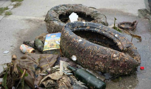 Denizden çıkan atıklar minikleri de şaşırttı: Lastik tekerlekler, teneke kutular