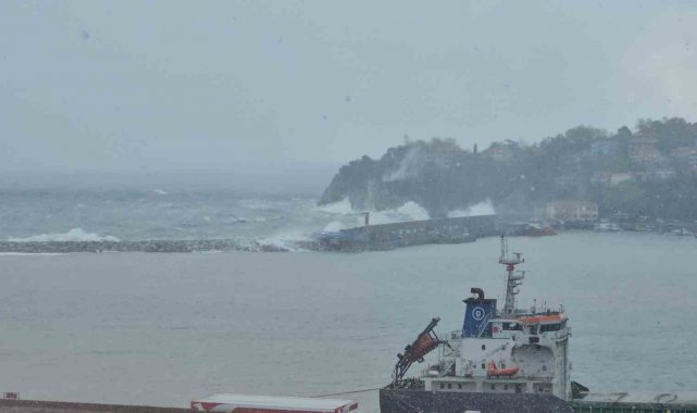 Zonguldak'ta denizden gelen kar bulutuyla birlikte kısa süreli kar yağışı etkili oldu. Hava sıcaklığının 3 dereceye kadar gerilediği şehirde şiddetli rüzgar nedeniyle Liman Caddesi'ndeki dalga boyu 7 metreyi buldu. Dalgalar, duvarı aşarak liman içine girdi.
