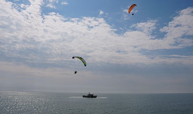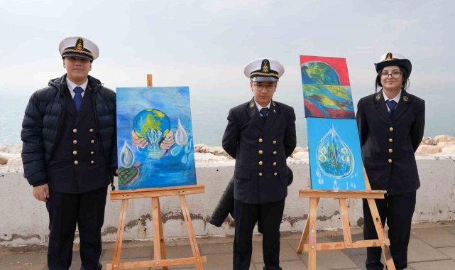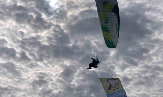 Denizden sahil güvenlik, havadan paramotorlar destek verdi, öğrenciler suyun önemine dikkat çekti