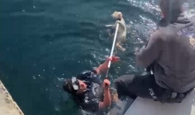 Kocaeli'nin Gölcük ilçesinde denize düşen kedi, itfaiye ve deniz polisi ekipleri tarafından kurtarılarak doğal yaşam alanına bırakıldı.