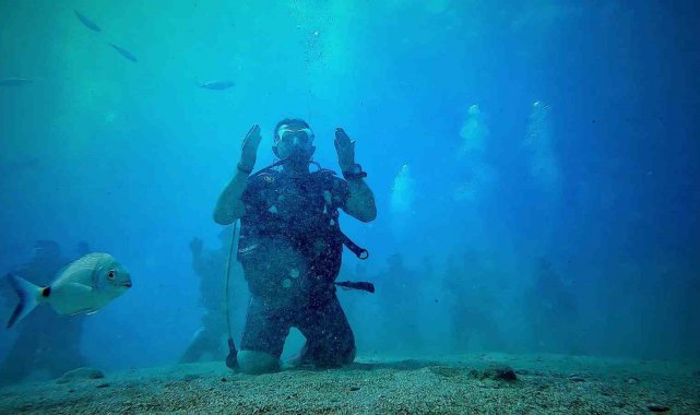 Muğla'nın Fethiye ilçesi Sarıyarlar Koyu'nda Sakarya Serdivan Sualtı Grubu dalgıçları sıra dışı bir farkındalığa imza attı. Grup üyeleri, dalış turu sırasında öğle namazını denizin metrelerce altında topluca kıldı. Dalış lideri Bünyamin Erdoğmuş öncülüğündeki ekip, kayalıklarda okunan ezanın ardından hep birlikte suya inerek saf tuttu. Zorlu şartlara rağmen namazlarını kılan dalgıçlar, o anları su altı kamerasıyla kayıt altına aldı. Etkinliğin ibadetin her şartta yapılabileceğini göstermek için yapıldığını söyleyen grup üyeleri, "Namazı kaçırmanın hiçbir bahanesi yok. Su altında da, su üstünde de eda etmeliyiz. Bizim için mekanın önemi yok" sözleriyle mesaj verdi.