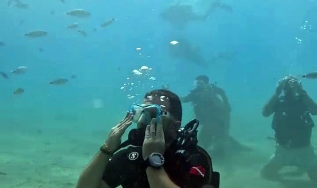 Muğla'nın Fethiye ilçesi Sarıyarlar Koyu'nda dalış turuna çıkan Sakarya Serdivan Sualtı Grubu üyeleri, öğle namazını suyun metrelerce altında kılarak dikkat çekici bir farkındalığa imza attı. Su altında namaz kılmanın güçlüklerine rağmen ibadetlerini tamamlayan ekip, "Namazı kaçırmanın hiçbir bahanesi yok. Su altında da, su üstünde de eda etmeliyiz. Bizim için mekanın önemi yok" dedi.