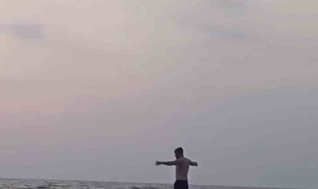 Denizin ortasına merdiven kurup, üzerinden atlayarak eğlendiler